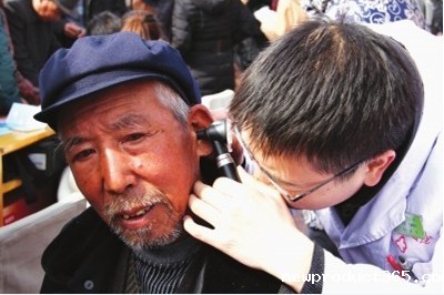 专家给老人检查耳朵