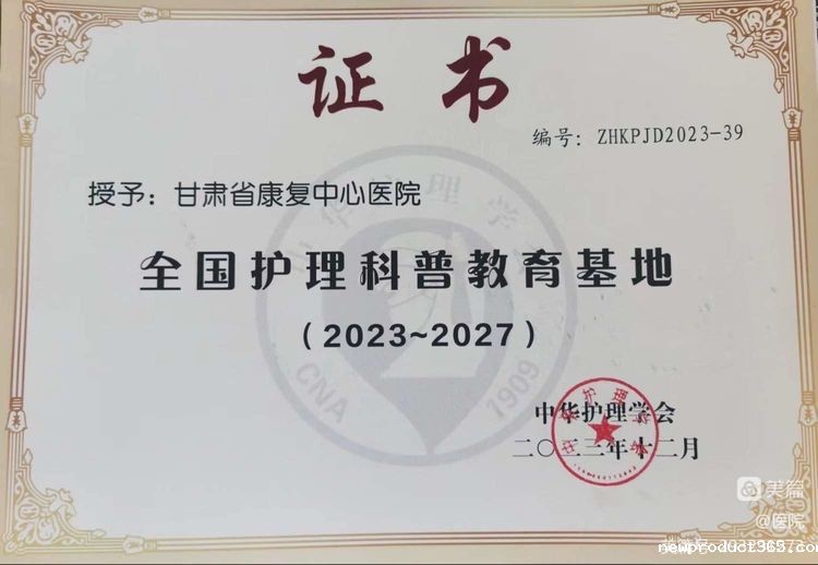 11月30日由中华护理学会举办的全国护理科普教育基地授牌仪式暨2023年科学传播能力提升培训班在京举行。甘肃省康复中心(医院)以一流的护理专业师资队伍、专业的健康教育管理能力、精湛的护理专业技术、优质的护理服务,再度被评为全国护理科普教育基地。